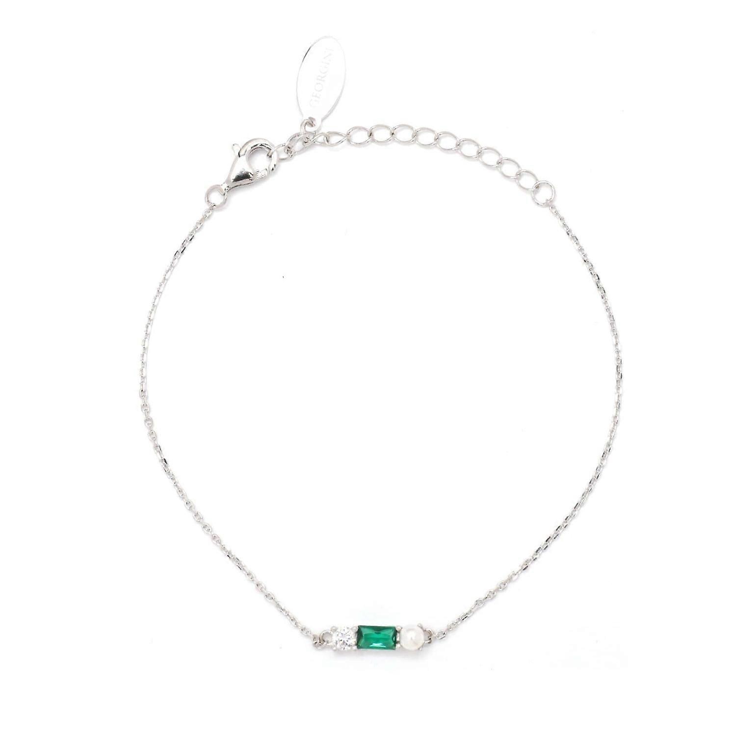 Discover the beauty of the Georgini Gifts Emerald Isle Freshwater Pearl Bracelet in Emerald and Silver - a stunning piece of jewelry that combines the elegance of freshwater pearls with the captivating charm of emerald cubic zirconia. This exquisite bracelet is not just a mere accessory, but a masterpiece that represents sophistication, grace, and eternal affection.Key Features:Freshwater Pearls: The delicate pearl in this bracelet has been meticulously handpicked to ensure its lustre, shape, and overall quality. The natural beauty of freshwater pearls shines through in their soft, iridescent glow, making this bracelet a true testament to nature's artistry.Emerald Cubic Zirconia: The stunning green emerald cubic adds a touch of enchantment to this bracelet. Known as the "Stone of Love," the emerald colour is believed to symbolise rebirth, fertility, and eternal love. The rich green hues perfectly complement the pearl, creating a harmonious and captivating blend.High-Quality Materials: The bracelet is crafted with meticulous attention to detail, using premium quality materials. The luxurious Rhodium plated 925 sterling silver setting is durable and hypoallergenic, making it suitable for sensitive skin.Adjustable Length: With an adjustable chain and clasp, this bracelet can be worn comfortably by most wrist sizes, ensuring a secure and personalised fit for all. It measures 16cm and has a 4cm extension.Timeless Design: The design of the Emerald Isle Freshwater Pearl Bracelet is classic and versatile. It can be worn with any outfit, from casual to formal, making it an ideal addition to any jewellery collection. Whether it's a special occasion or an everyday accessory, this bracelet is the perfect choice.Perfect Gift: This bracelet comes in a stylish gift box, making it an excellent gift choice for your loved ones. Whether you're celebrating an anniversary, birthday, or any significant moment, this bracelet is a heartfelt and elegant gesture of love and appreciation.The Georgini Gifts Emerald Isle Freshwater Pearl Bracelet in Emerald and Silver is more than just a piece of jewellery; it's an embodiment of beauty, love, and timeless elegance. With its freshwater pearls, sparkling green cubic zirconia, and meticulous craftsmanship, this bracelet is a true work of art. Make a statement and cherish a moment with a piece that will be cherished for a lifetime.
