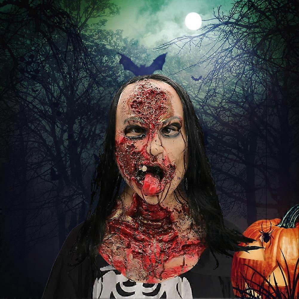 Ghost Face Cover Halloween Haunted Long Hair Ornament Up Prop Dead Look Natural Latex Blood Covered Blouse For Most Adults And Yout