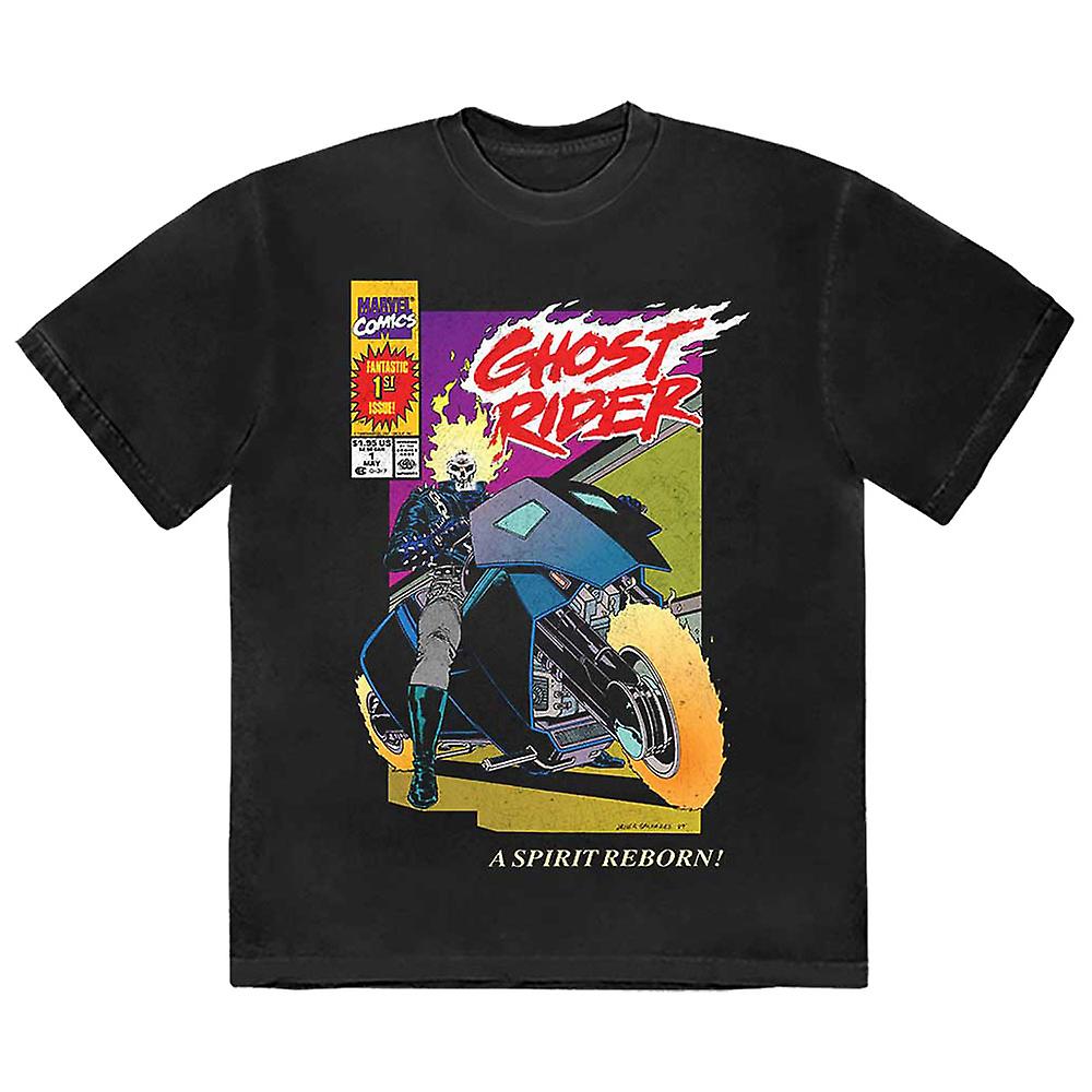 Official licensed Marvel Comics Unisex T-Shirt featuring the 'Ghost Rider Spirit Reborn Comic Cover' design motif. High quality T-Shirt available in a black colourway. High quality soft-style cotton unisex t-shirt featuring front printing. Comes in a wide range of sizes from Small through XX-Large, subject to availability.