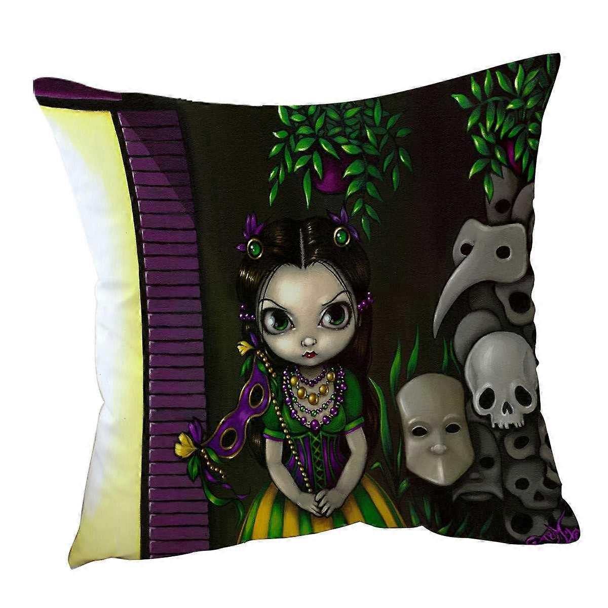 Ghosts of Mardi Gras Lovely Maiden and Masks Cushion Cover