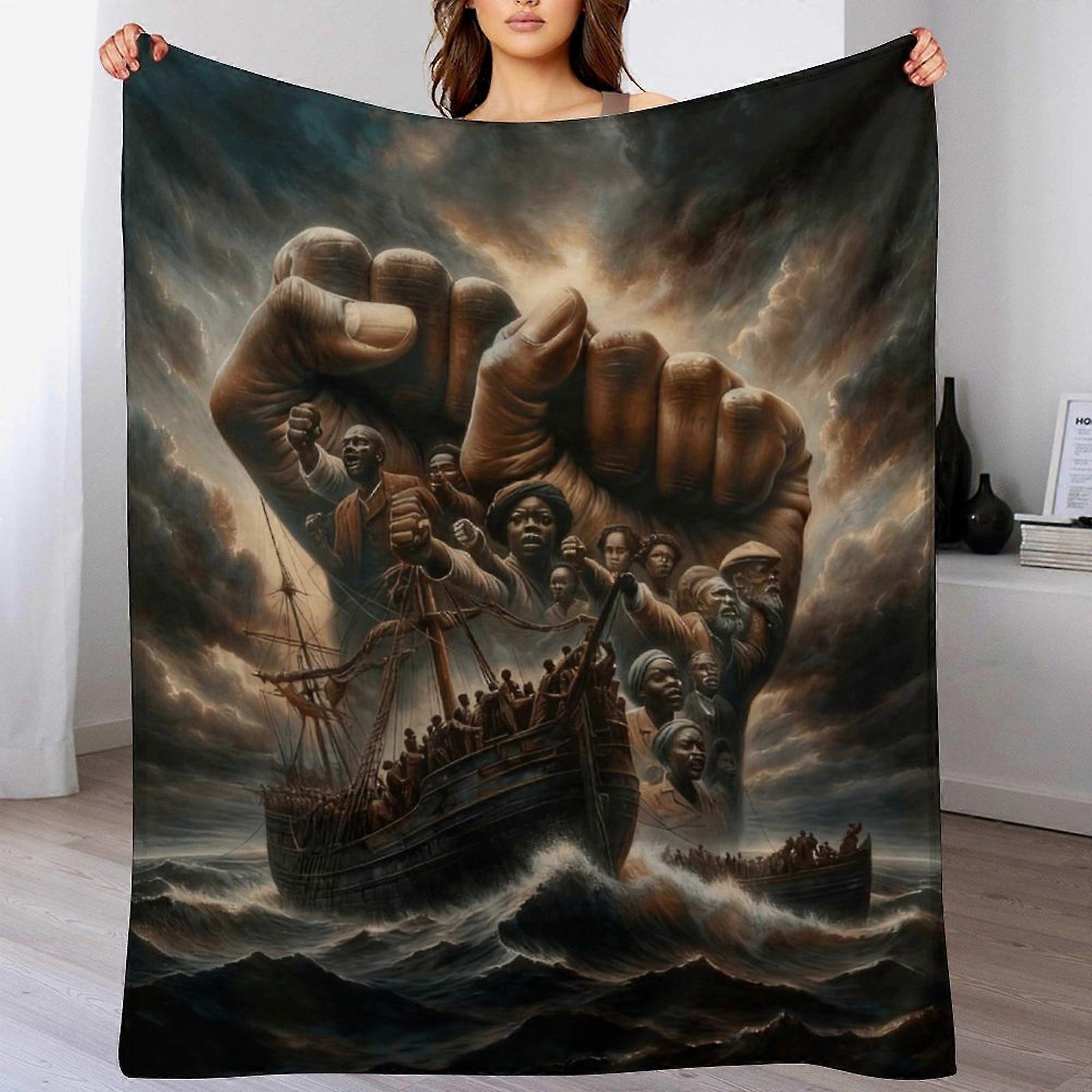Giant Hand & Ship Print Flannel Blanket - Cozy Warm Throw | Thought-Provoking Decor for Art Enthusiasts