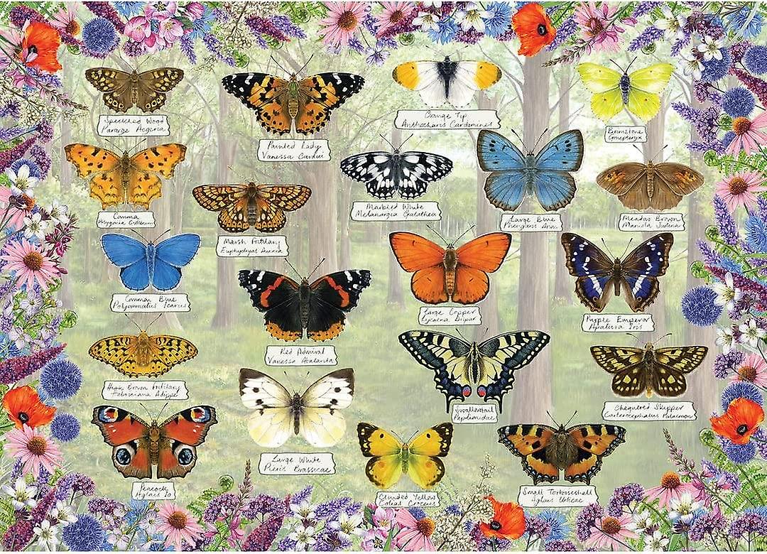 Beautiful Butterflies is a quality 1000-piece jigsaw puzzle by Gibsons.Artist: Fiona OsbaldstoneButterflies are some of the most beautiful insects to visit our gardens. In the UK, there are about 60 butterfly species, each of which come in vastly different shapes, sizes and colours. In the gorgeous 1000 piece puzzle, artist Fiona Osbaldstone has painted her favourite butterflies. How many species have you been lucky enough to see?An artwork poster is included for you to reference whilst you piece together your jigsaw puzzle.Completed puzzle size: 49 x 68cmGibsons are renowned for their jigsaw puzzles with carefully illustrated pieces which are made from the highest quality long-lasting 100% recycled board and are made with the thickest puzzle board on the market (2.33mm). The beautifully illustrated pieces are designed to fit perfectly.The planet friendly puzzle box has a fresh new look and Gibsons Games have used biodegradable clear labels to secure the lid instead of shrink wrap to reduce the plastic waste. Gibsons use a vegetable-based gloss coating on the box for extra protection and the puzzle pieces are stored in a plastic bag that can be recycled by most councils.