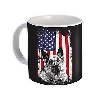 Gift Mug: German Shepherd Sepia USA Flag Dog