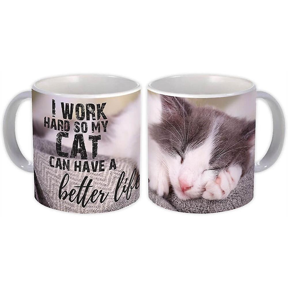 Gift Mug: I Work Hard My Cat Better Life Sleeping