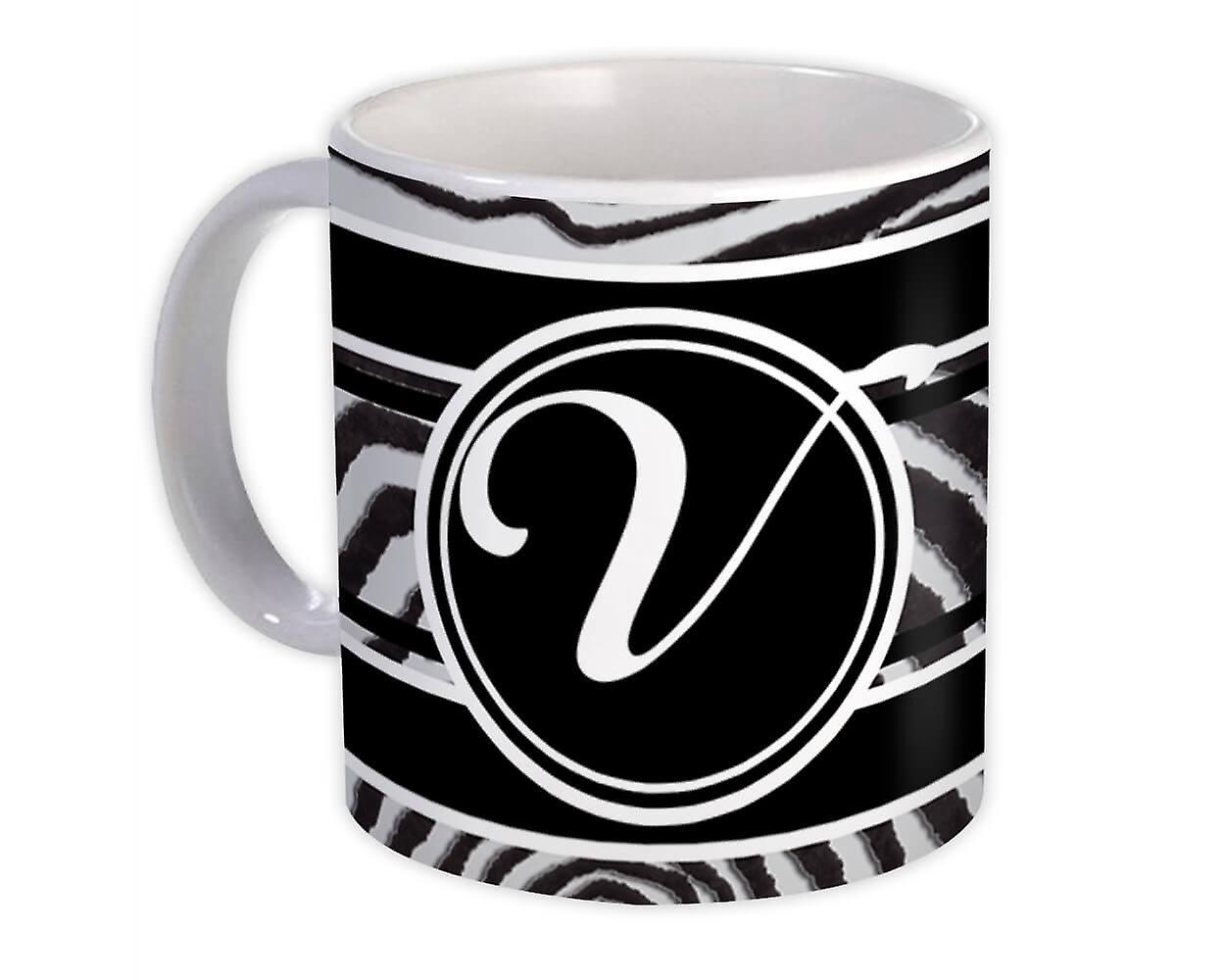 Gift Mug: Monogram Letter V Zebra