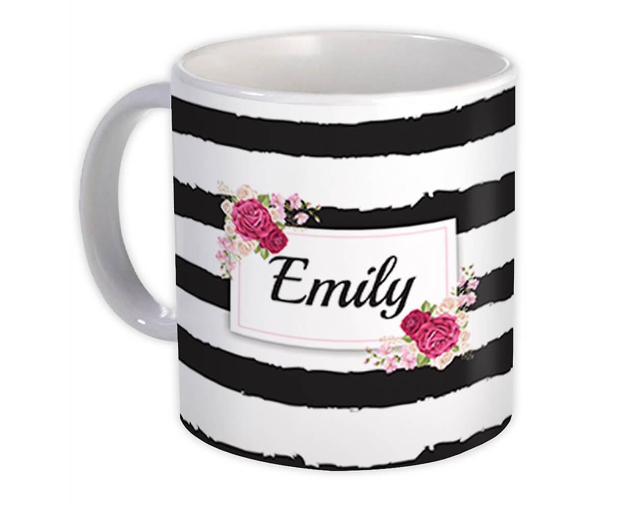 Gift Mug: Painted Stripes Floral Frame Roses