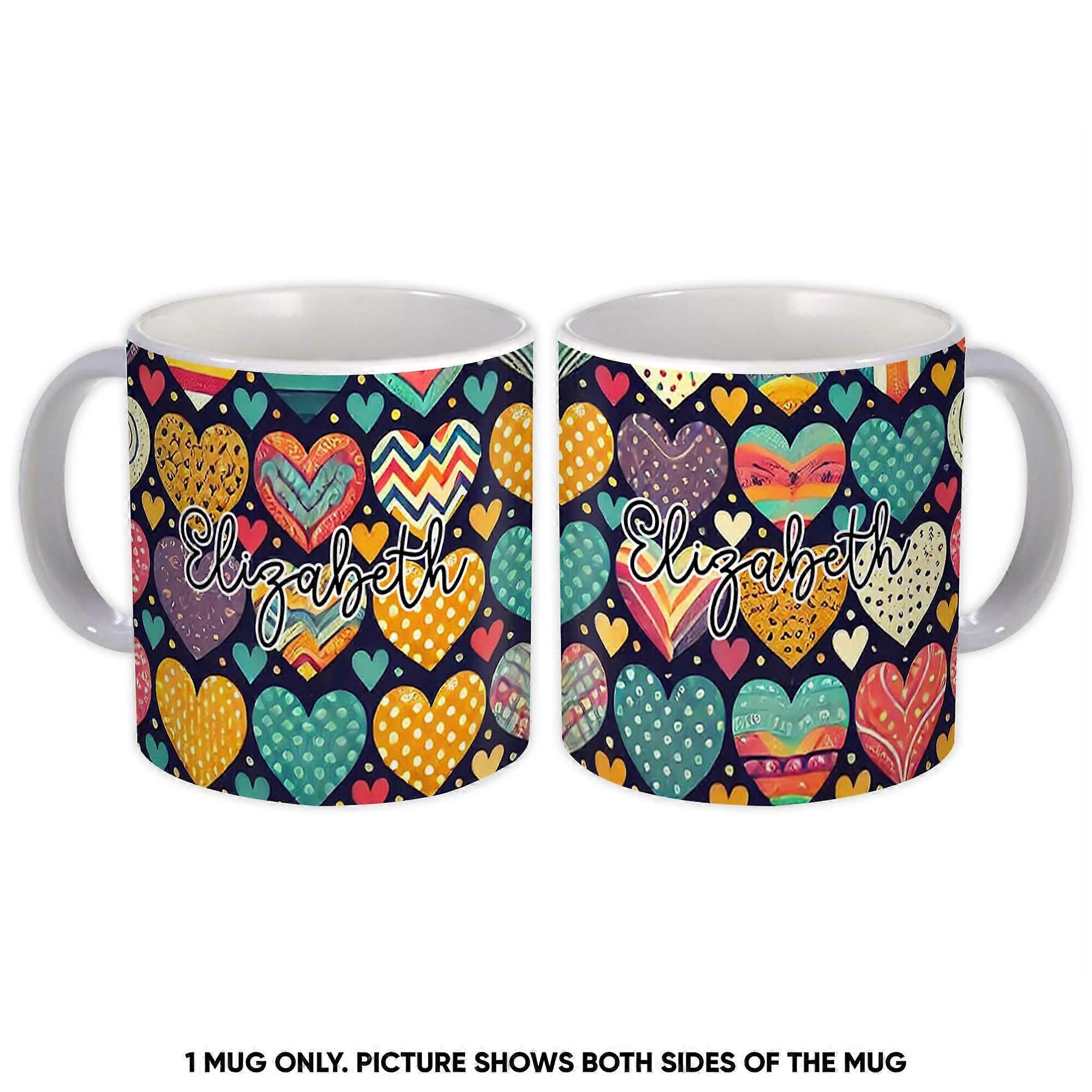 Gift Mug: Personalized Colorful Patterned Hearts Dark Background Valentines Day Fun