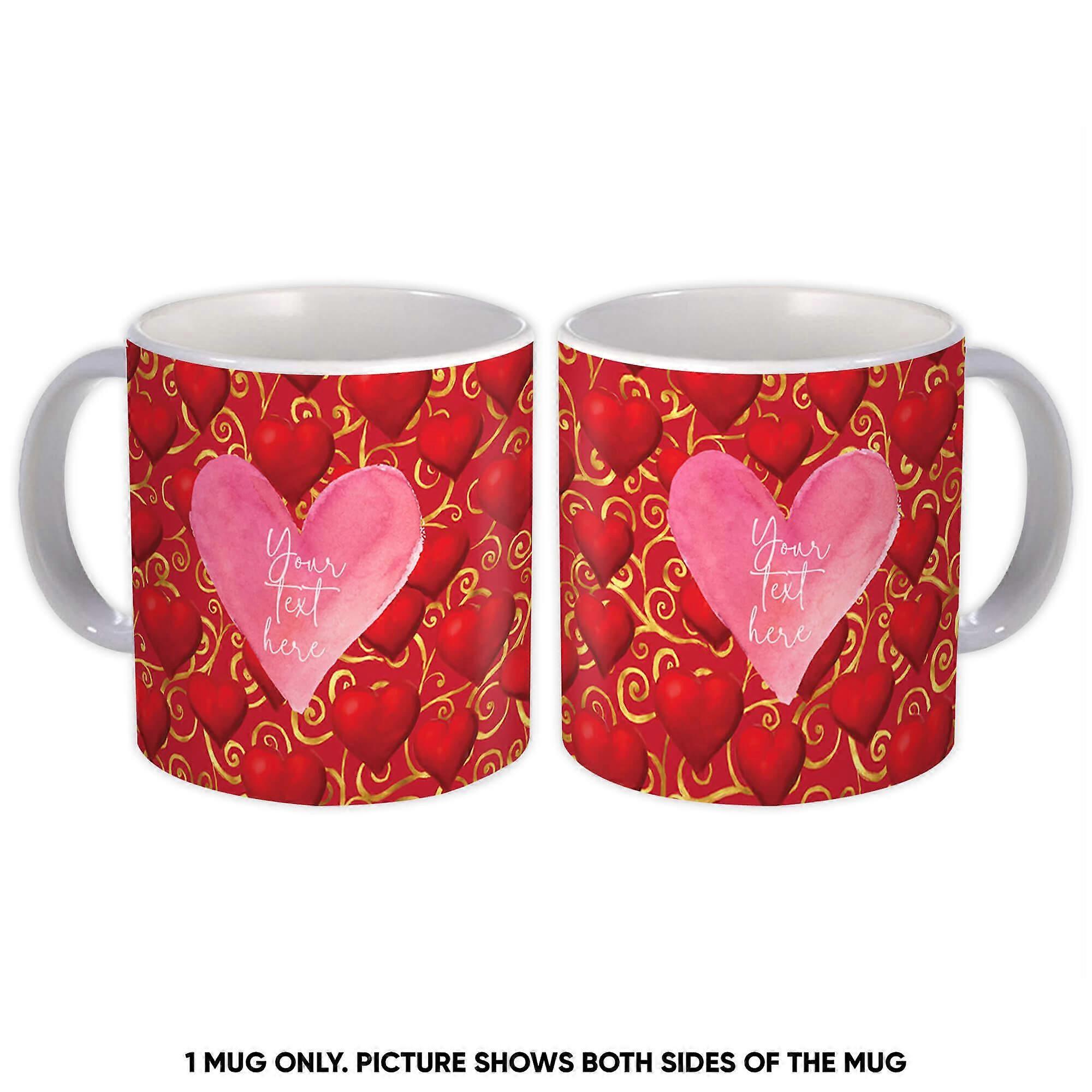 Gift Mug: Personalized Red Hearts Pattern Gold Swirls Valentines Day Romantic