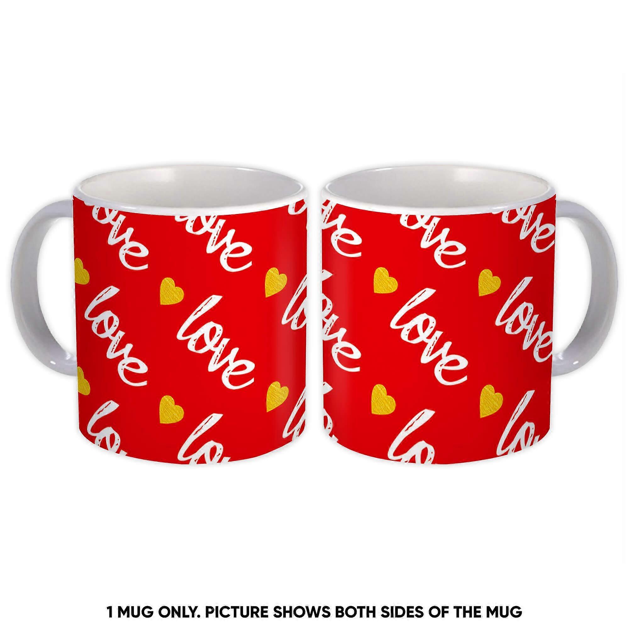 Gift Mug: Personalized White Love Text with Yellow Hearts Valentines Day Fun