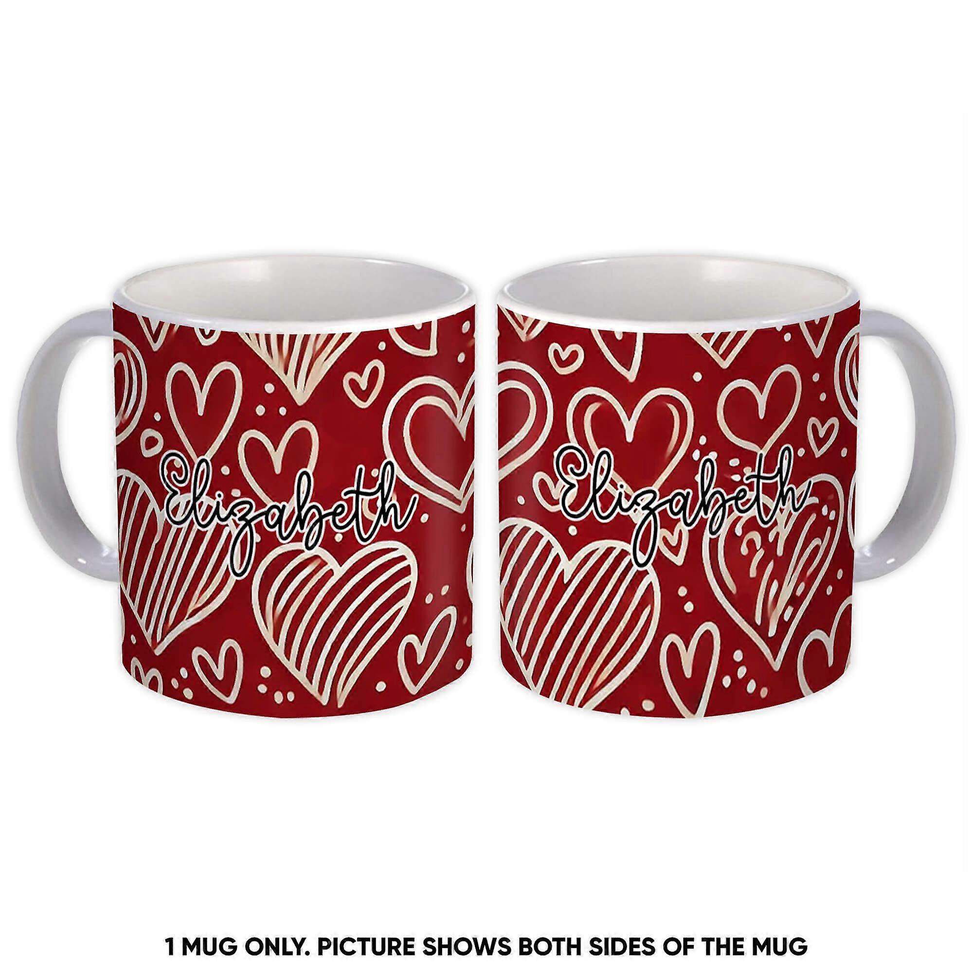 Gift Mug: Personalized White Striped Hearts Red Background Valentines Day Fun