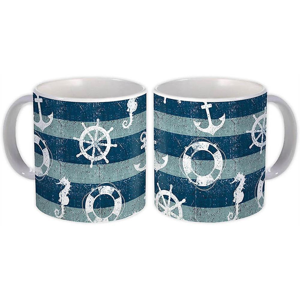 Gift Mug: Retro Maritime Pattern Lifebuoy