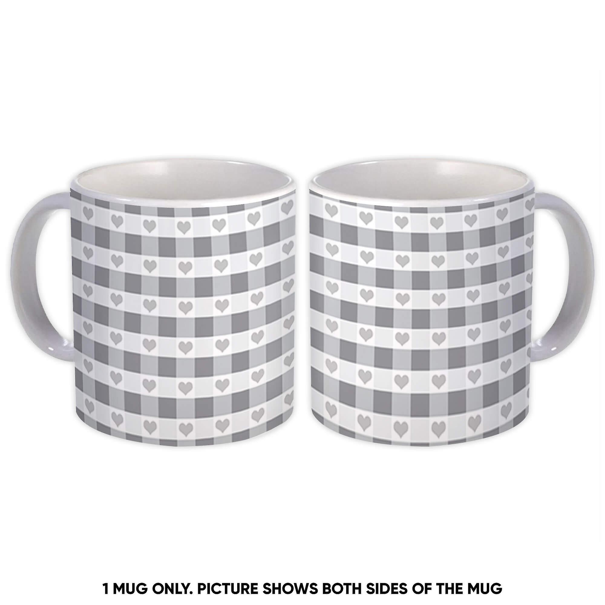 Gift Mug: Tartan Hearts Pattern Grayscale
