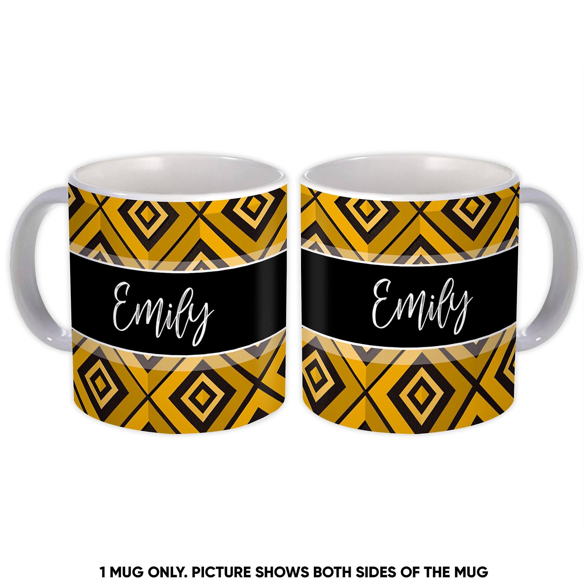 Gift Mug: Yellow Black Tartan Pattern Squares