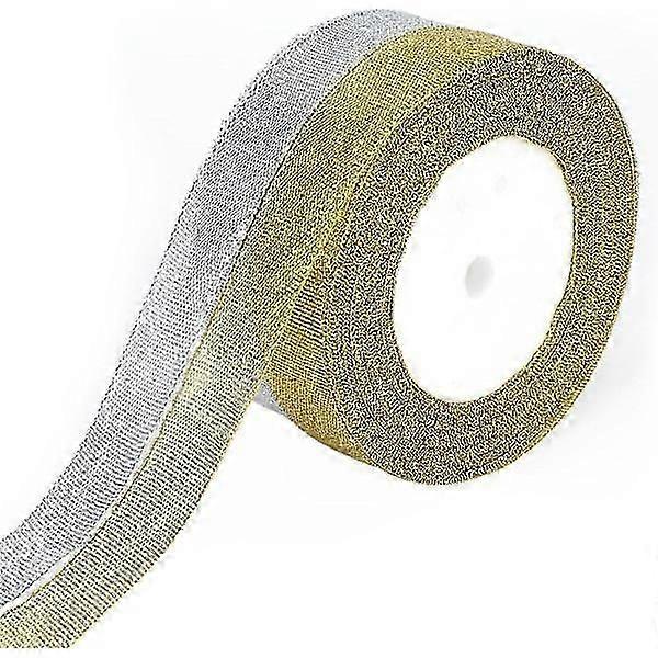 Gift Wrapping Ribbon - 25mm 22m Decorative Christmas Ribbon - Gold and Silver Ribbon for Christmas Wrapping Gift Crafts - 2 Rolls