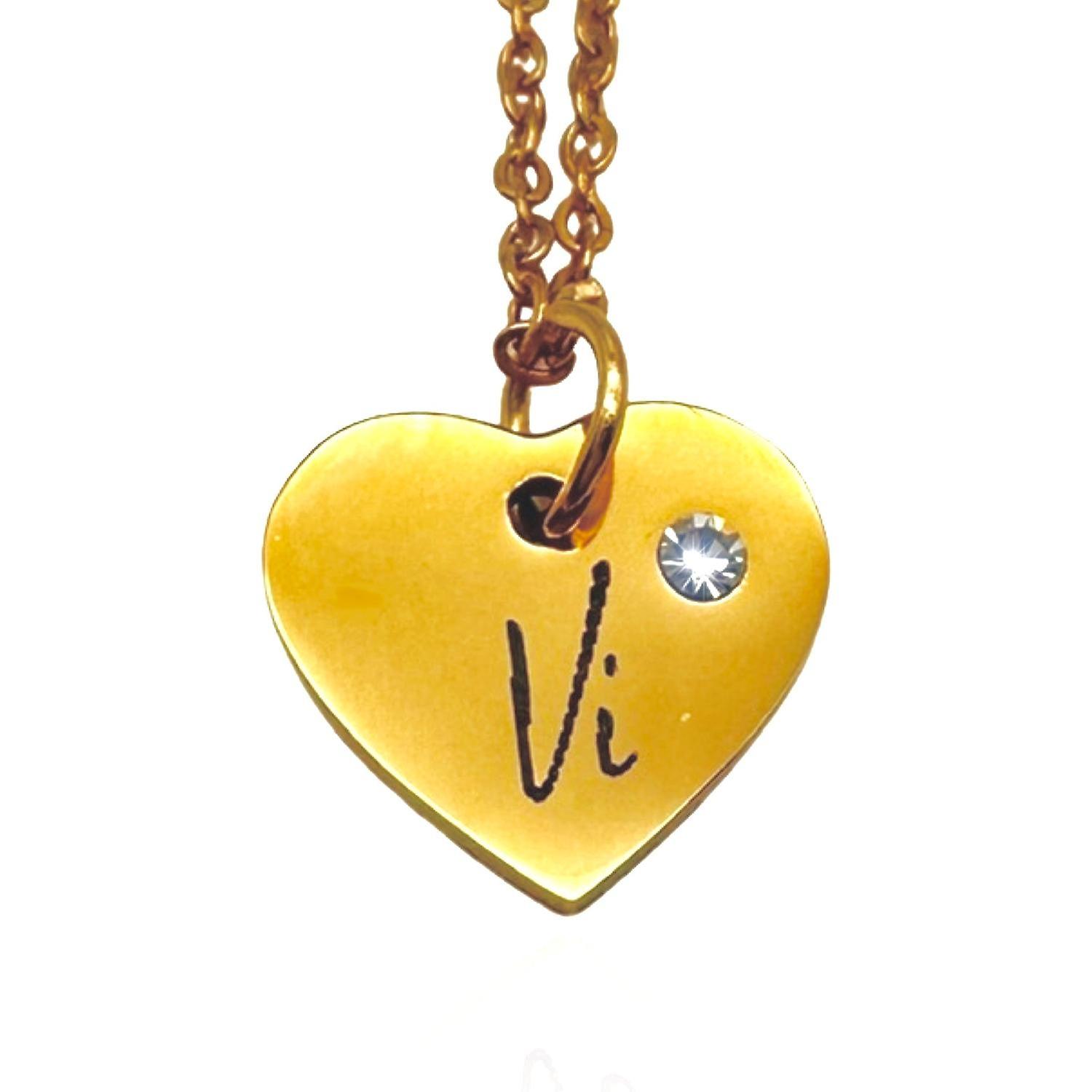 Förgylld bricka ''Vi'' hjärta guld sten halsband kedja alla hjärtans dag