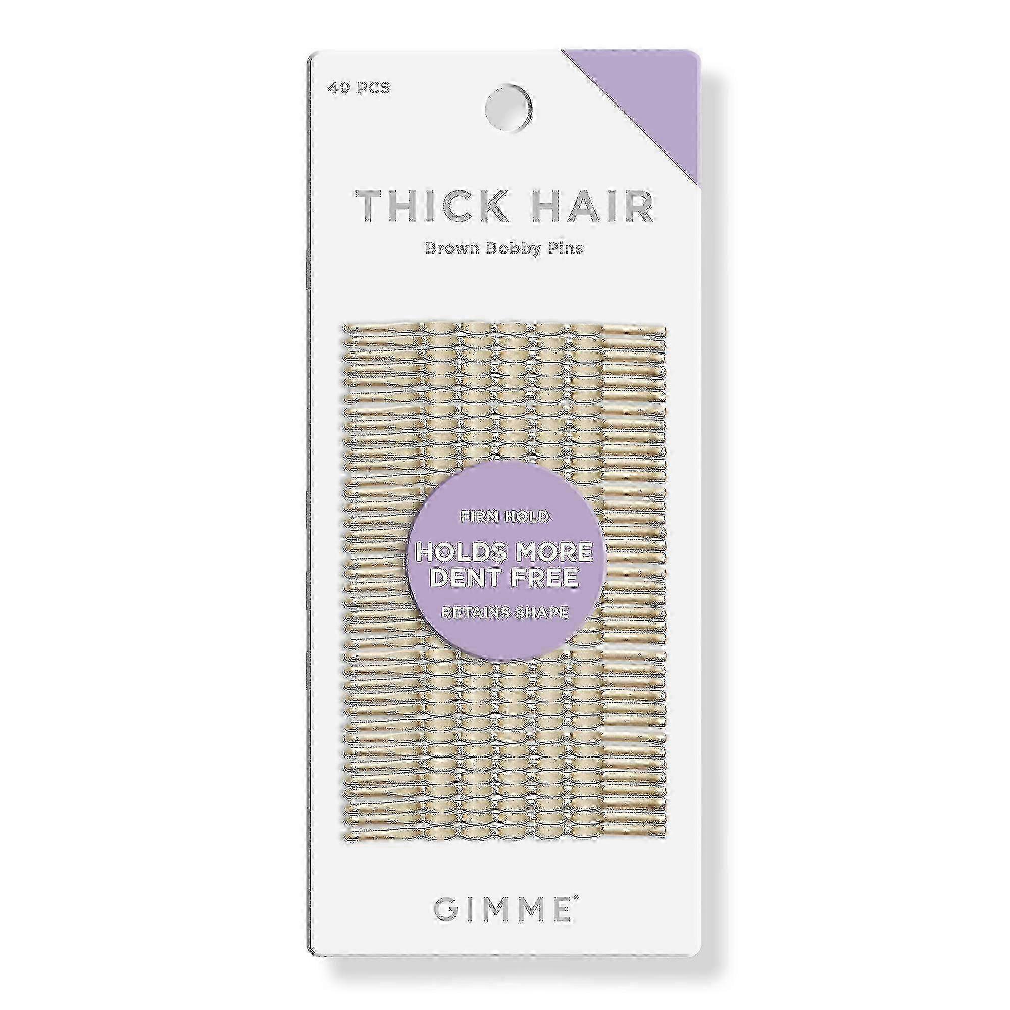 Find your perfect fit with GIMME beauty Thick Hair Blonde Bobby Pins for a firm and comfortable all day hold.BenefitsFirmly holds more hairRetains shapeProduct Packaging: Please note that some manufacturer may often change their packaging. This product may arrive different from what is pictured. We will always ship the most up-to-date packaging to our customers. Please contact us if you have any questions about this product or would like to request an older version of this product. UPC: 000002592963 Weight: 0.19 lbs