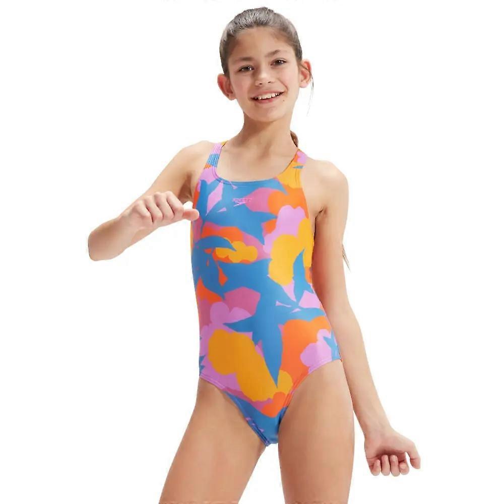 Girls Allover Medalist Swimsuit - Blue/Orange