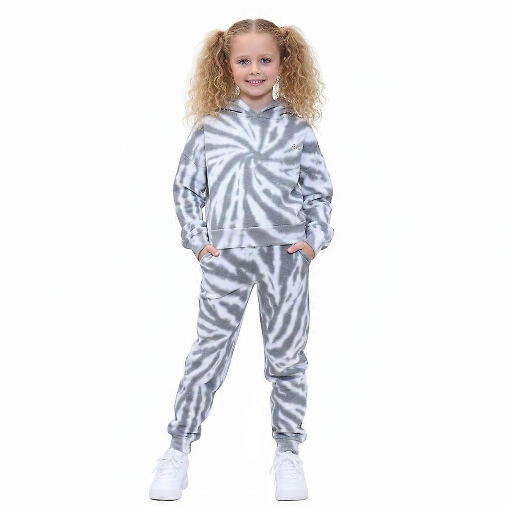 Girls Black Tie Dye Print Cropped Hooded Tracksuit
