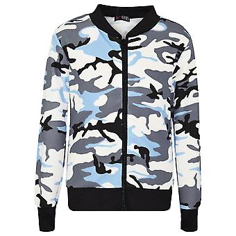 Girls Camouflage Print Sky Blue Outerwear Jackets