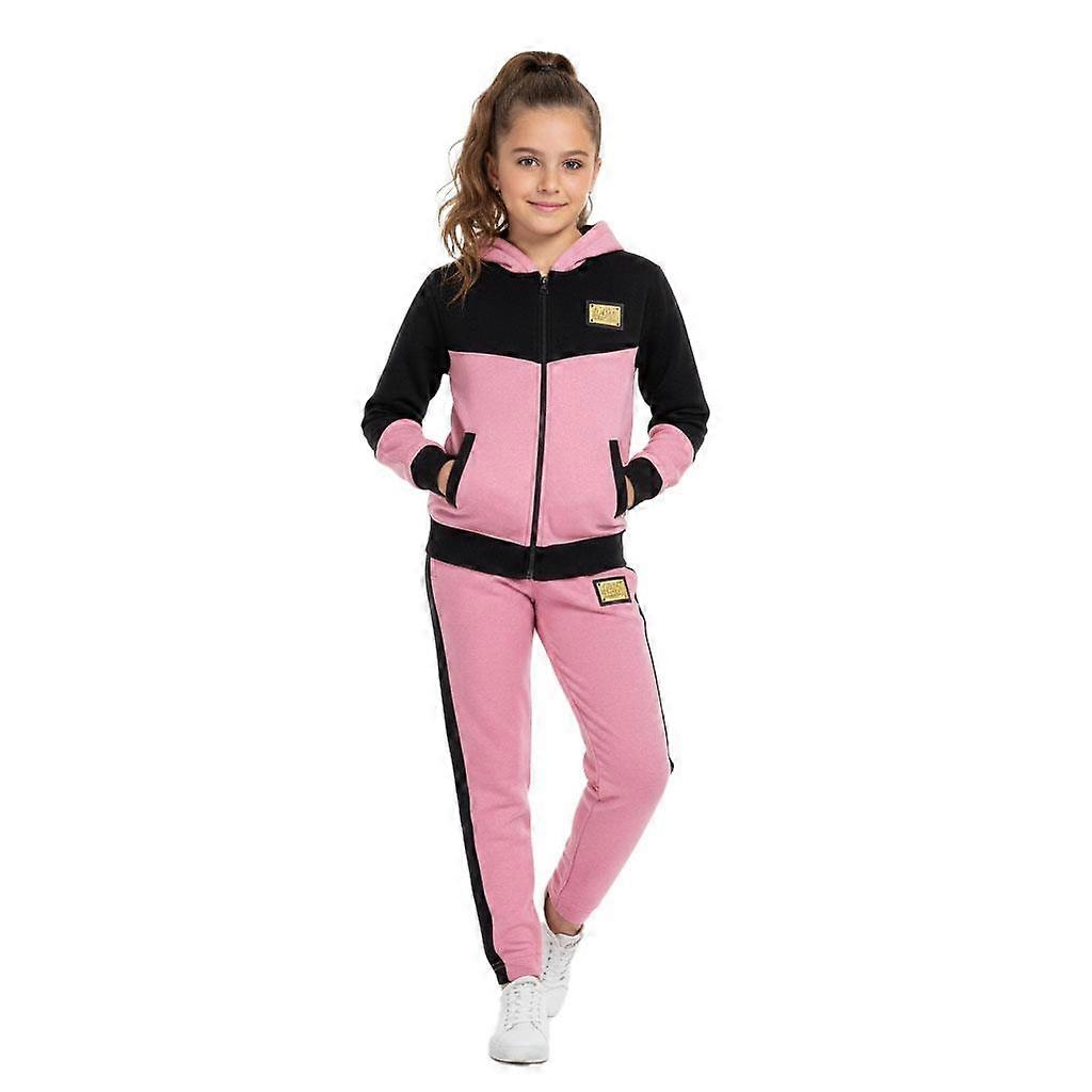 Girls Contrast Panelled Baby Pink Tracksuit