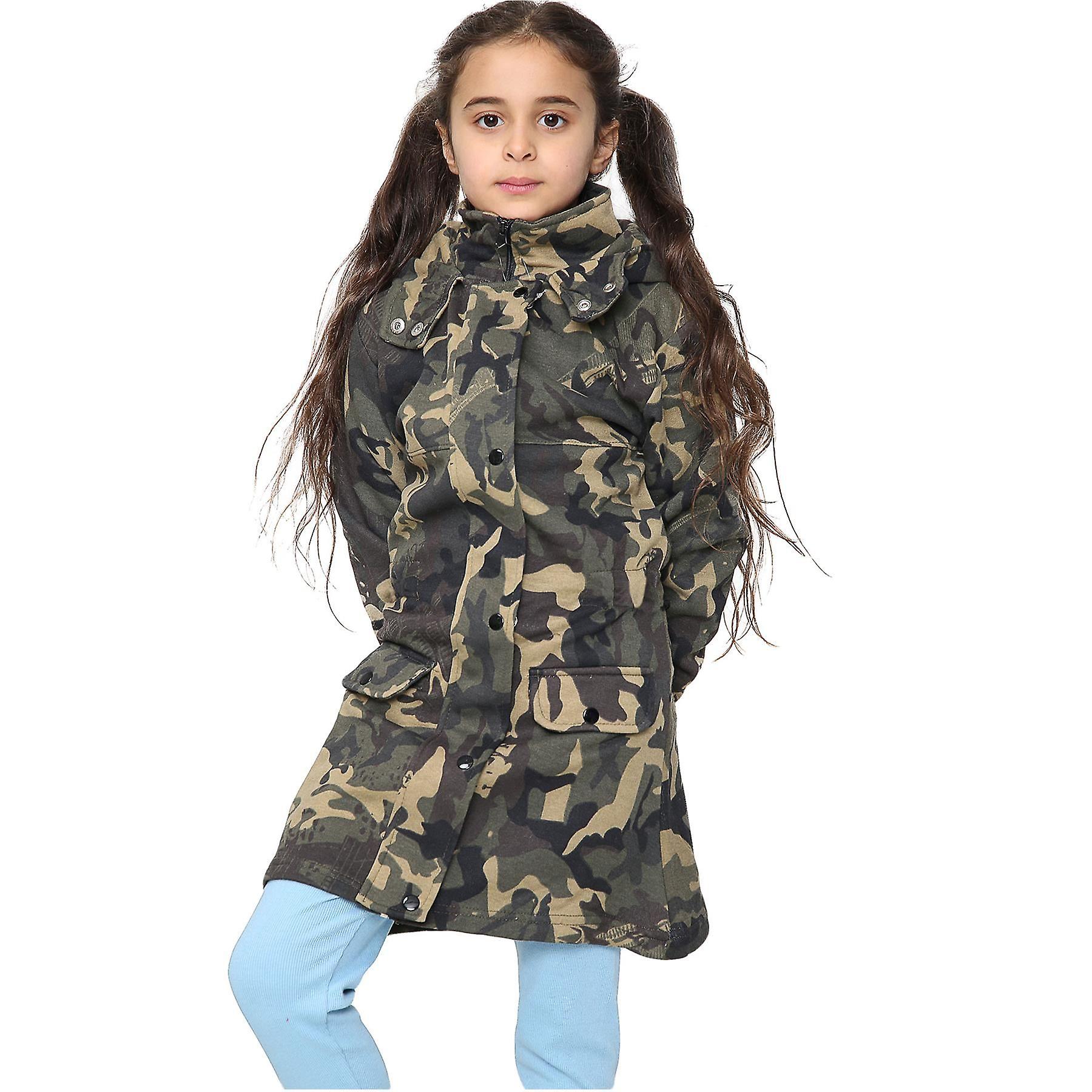 Girls Hooded Camo Green Long Parka Faux Fur Outerwear Jackets