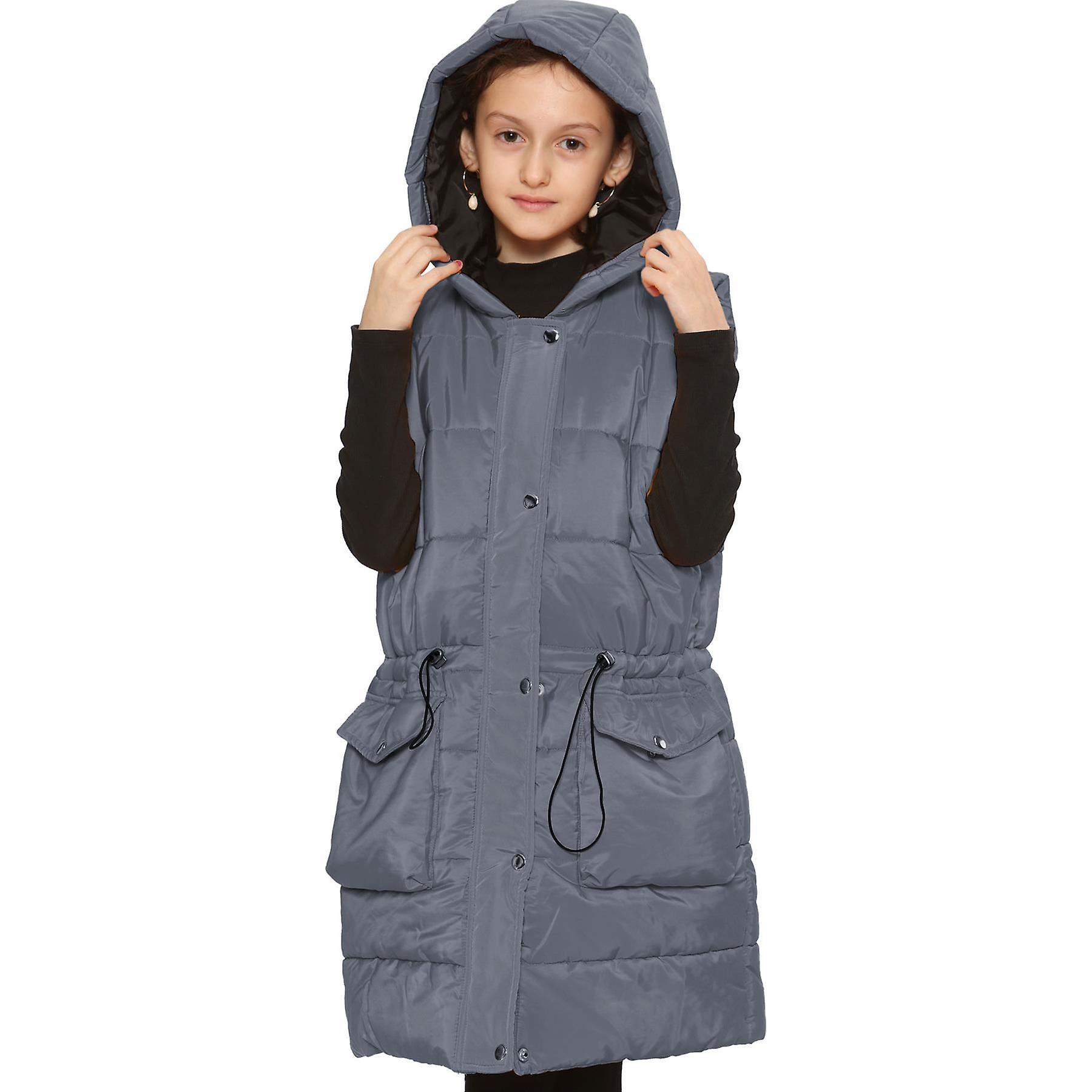 Girls Hooded Quilted Grey Gilet Padded Sleeveless Coat.SleevelessLine HoodZip And Button Fastening.Two Front pockets.100% Polyester.Good for daily use.