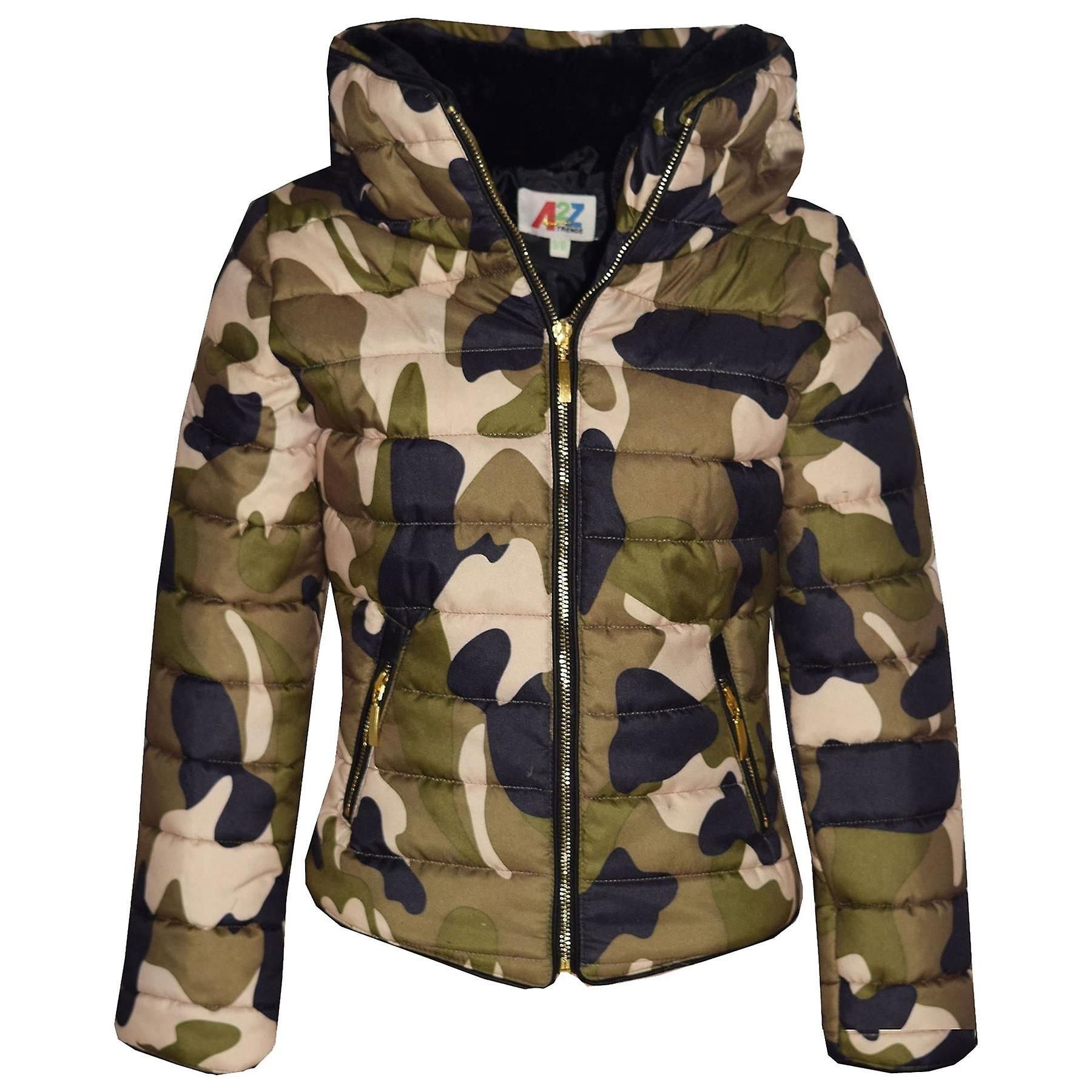 Girls Jacket Kids Padded Camouflage Puffer Bubble Fur Collar Quilted Warm Coats