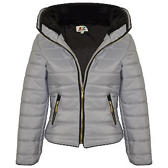 Girls Jacket Kids Padded Silver Puffer Bubble Fur Collar Quilted Warm Thick Coat