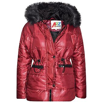Girls Puffer Wine Hooded Faux Fur Outerwear Jackets