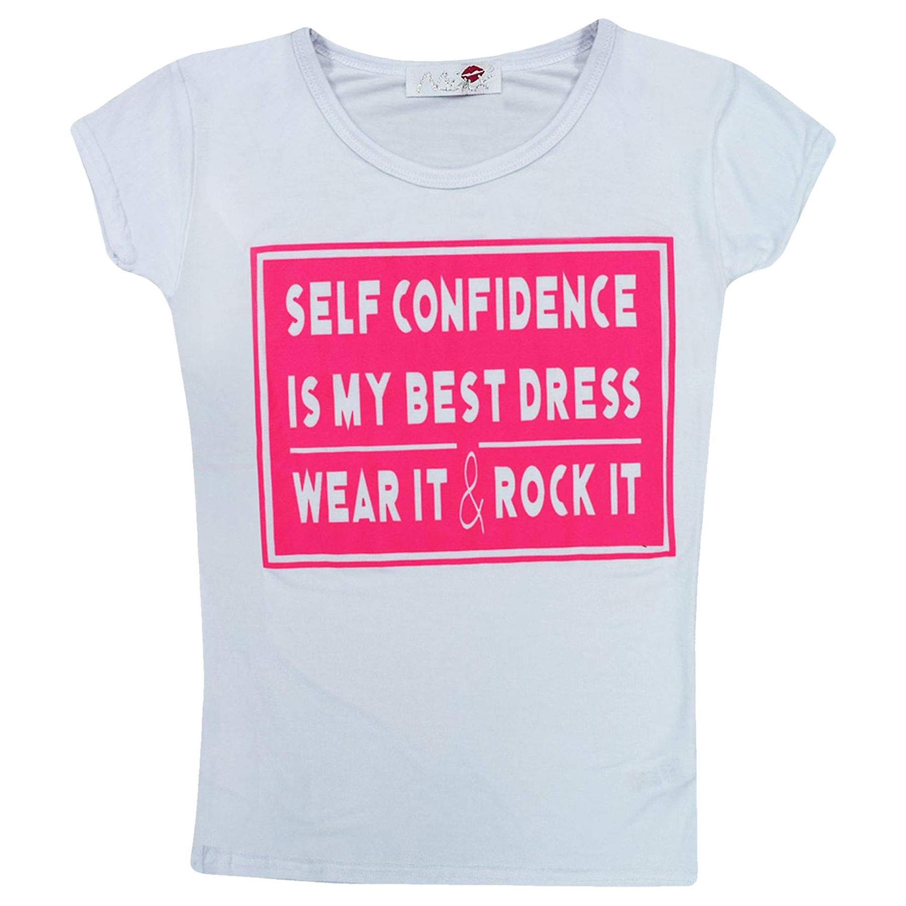 Girls Self Confidence Is My Best Dress Wear It & Rock It Print T Shirt Top