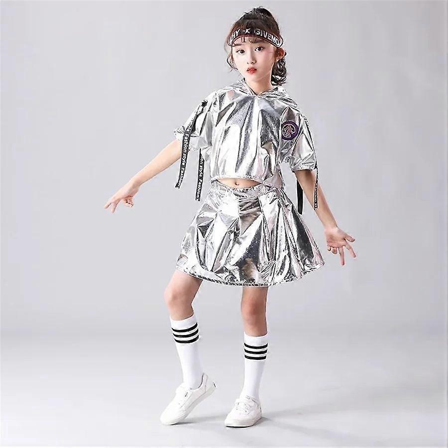 Girls' Silver Hip-hop Jazz Dance Costume Set – Performance & Rave Outfit