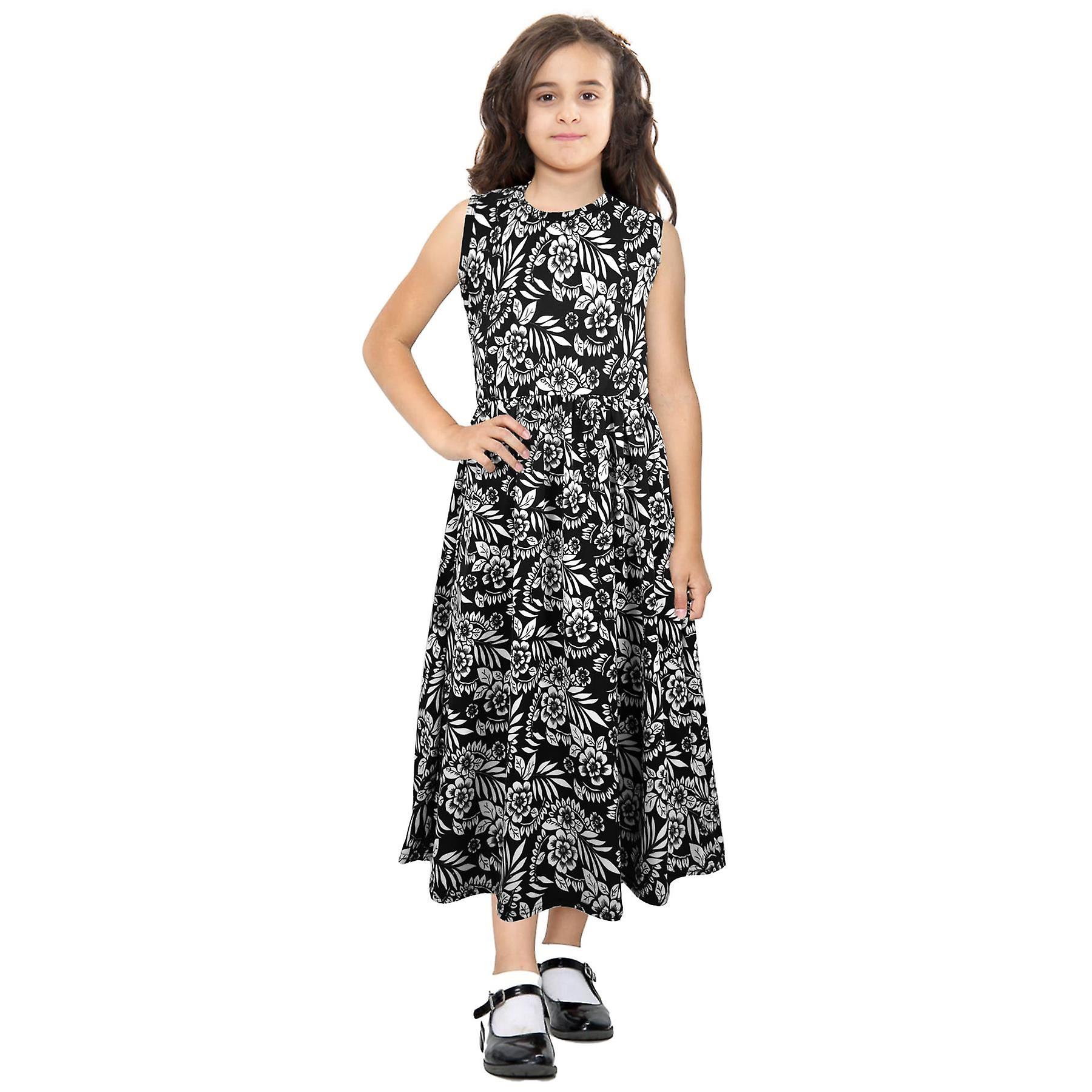 Girls Sleeveless Abstract Floral Printed Long Maxi Skater Dress