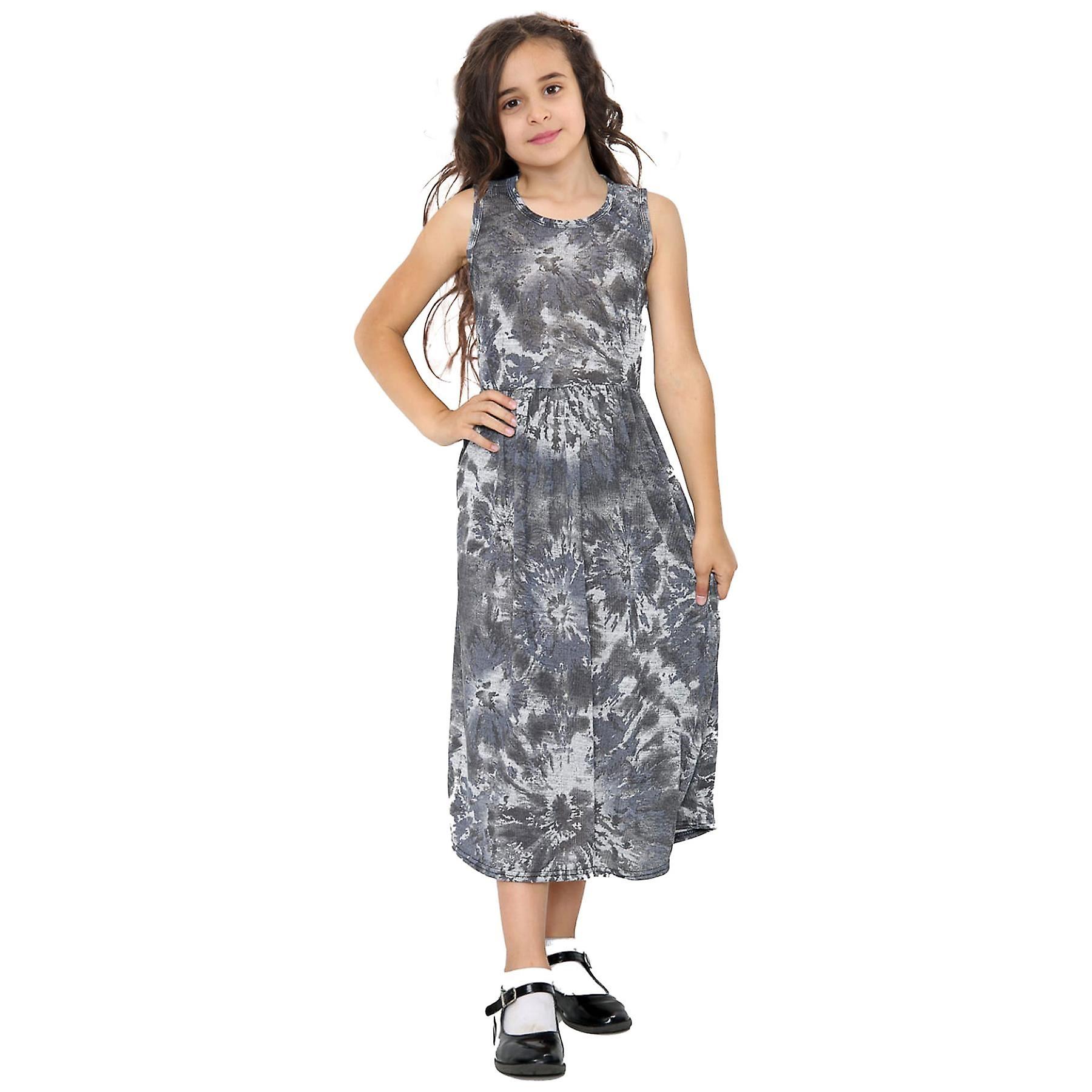 Girls Sleeveless Tie Dye Grey Printed Long Maxi Skater Dress