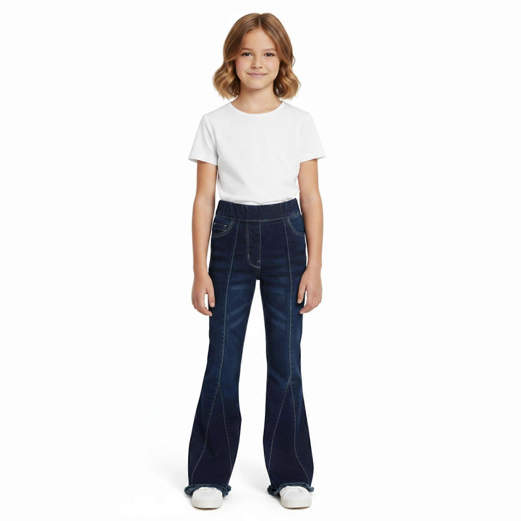 Girls Stretchy Bell Bottom Flared Dark Blue Comfort Denim Jeans
