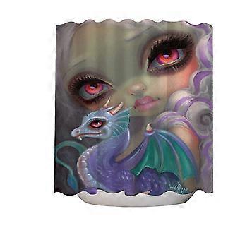 Girly Art Violet Icing Big Eyed Girl and Dragonling Shower Curtain