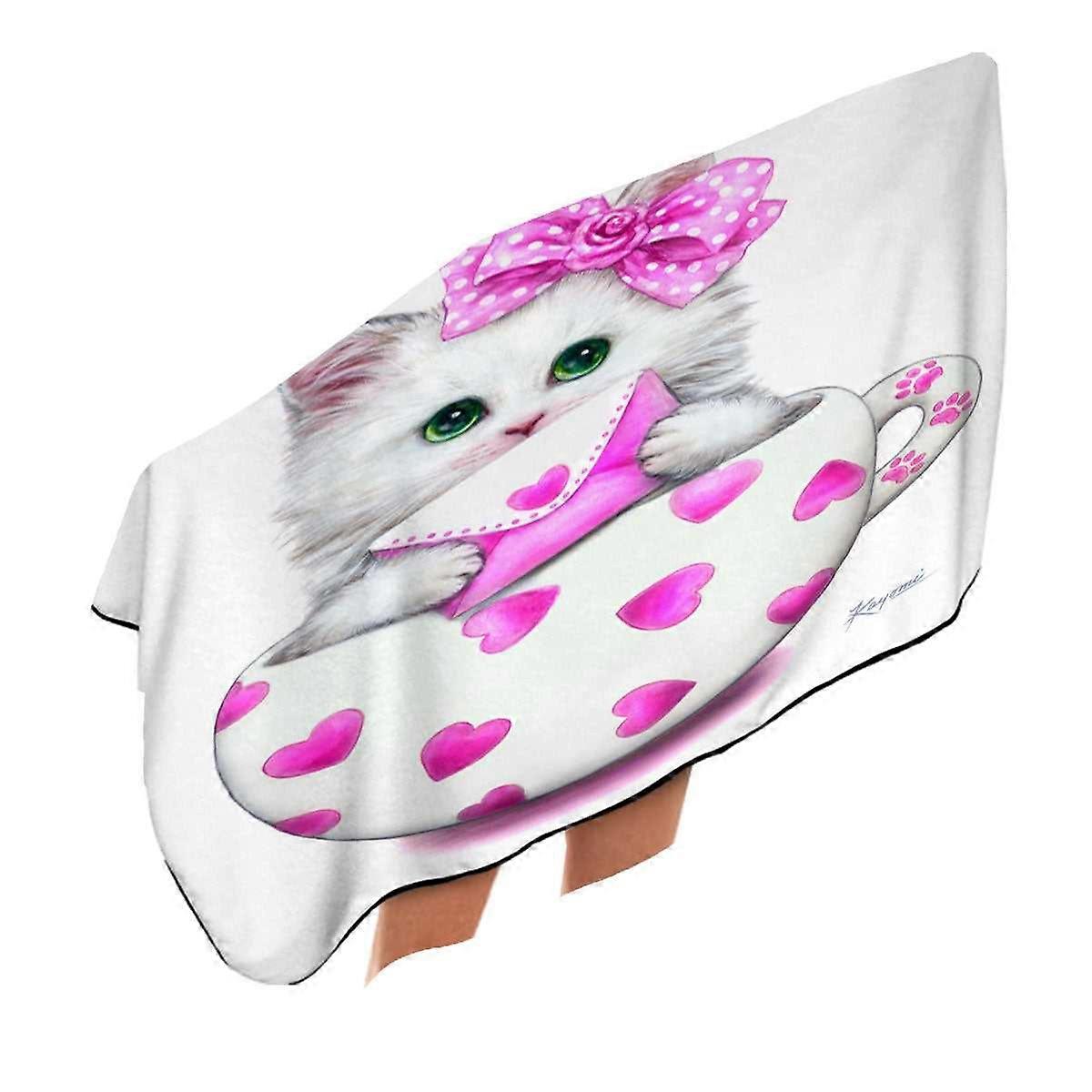 Girly Cat Art Drawings the Hearts Cup Kitty Microfiber Beach Towel