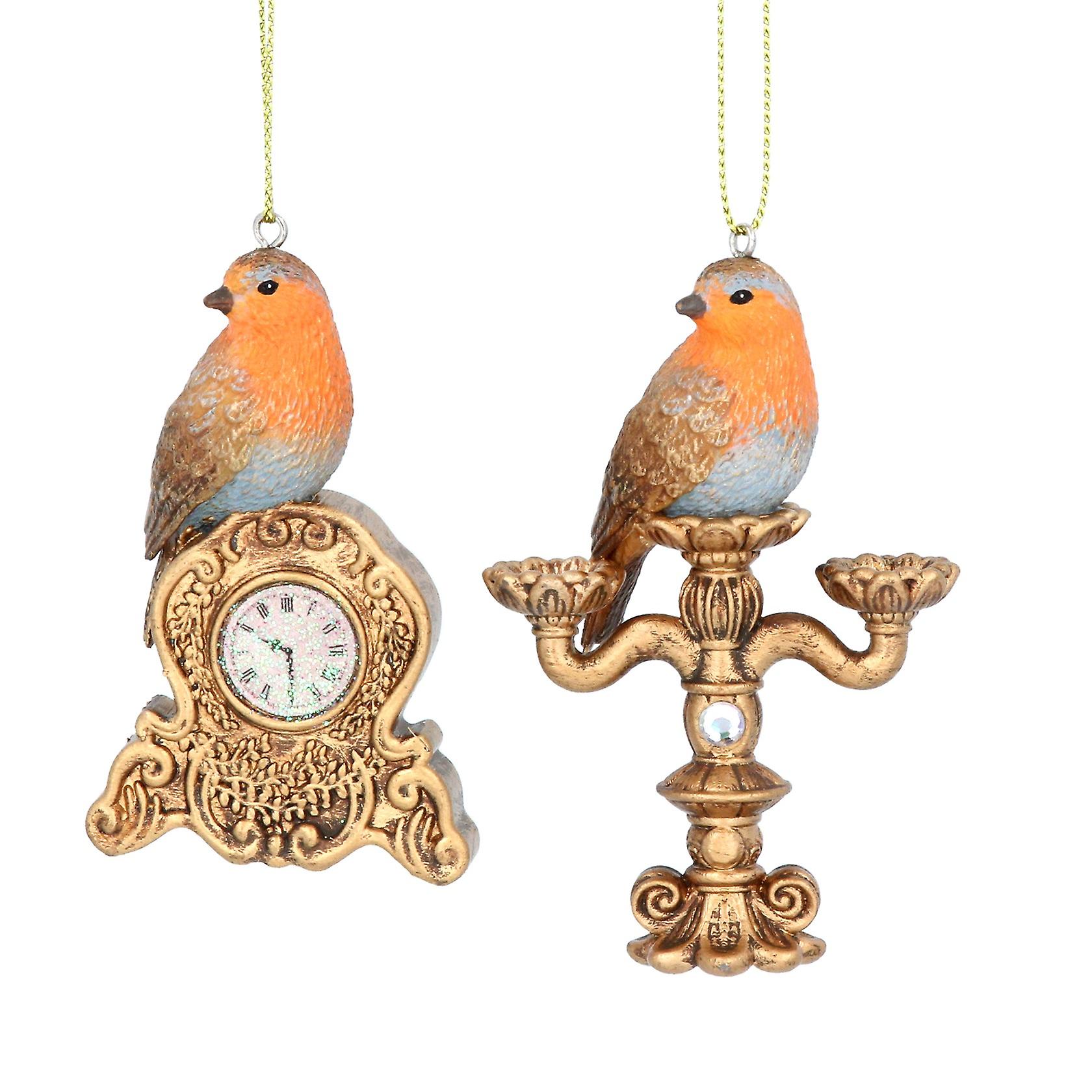 Gisela Graham Set Of Two Vintage Robin Christmas Tree Decorations This Unique Set Of Christmas Tree Decorations From Gisela Graham Are The Perfect Way To Add A Vintage Feel To Your Christmas Tree. Finished In A Set Of Two, These Decorations Feature Beautiful Red Breasted Robins On A Candelabra And An Antique Looking Clock. These Hanging Decorations Are Super Unique And Will Certainly Make A Statement On Your Christmas Tree, Simply Use The Gold Hanging Twine To Decorate Your Christmas Tree With These Stunning Ornaments. Whether You Love Robin Themed Decorations Or Simply Want Something A Little Different For Your Christmas Tree, We Would Highly Recommend These Robin Decorations From Gisela Graham. The Intricate Detailing And High Quality Features Will Be Enough To Make You Fall In Love With These Decorations.