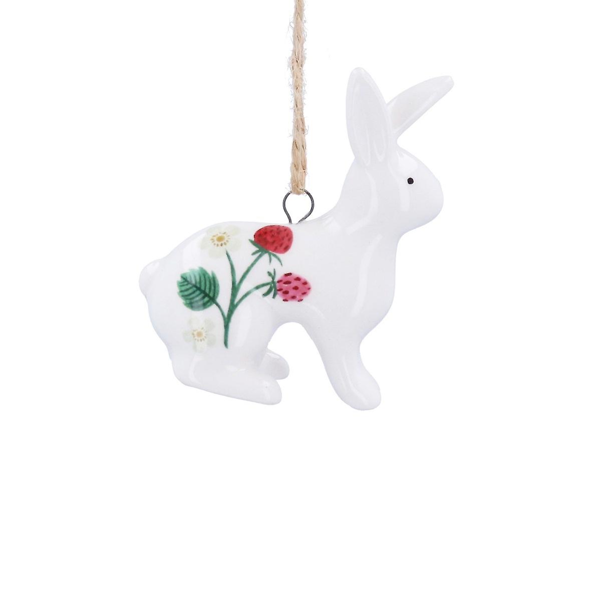 Gisela Graham Ceramic Strawberry Design Easter Bunny Decoration