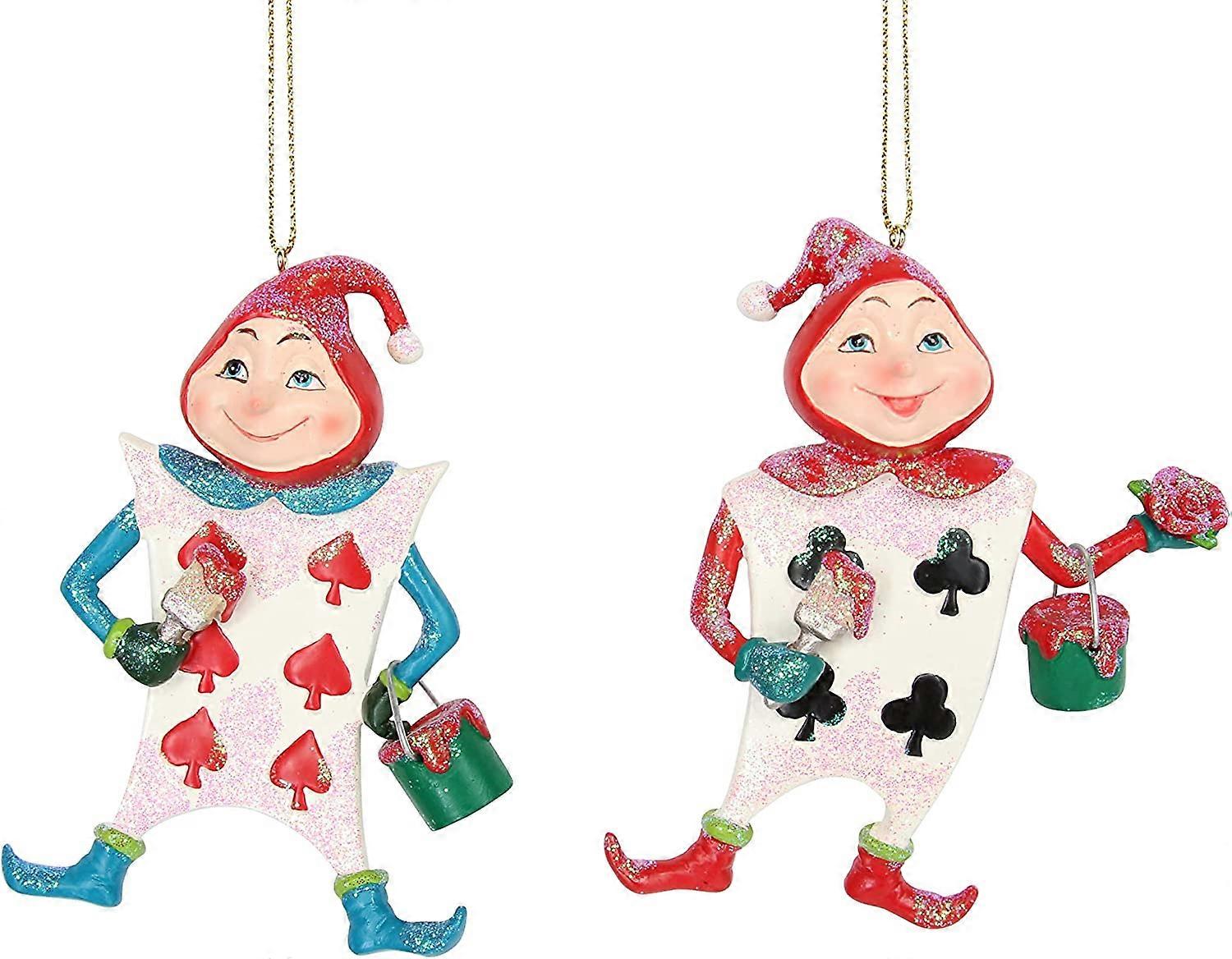GISELA GRAHAM SET OF TWO PLAYING CARD MEN CHRISTMAS TREE DECORATIONS If you love Alice in Wonderland then you are bound to love these brilliant novelty Christmas decorations by Gisela Graham [/gisela-graham-gifts-decorations.html]. In this set you will receive 2 decorations, each with vibrant colourations and a unique design of playing cards. Look closely at the wonderful detailing on these decorations to discover ace of spades, a paint brush and pot as well as matching hats and a touch of sparkle. Display these ornaments on your Christmas tree for a fairy tale inspired theme as well as a gorgeous shimmer and shine. These decorations are super unique and are unlike anything we have seen before, add a quirky feel to your Christmas display and create your very own wonderland with these playing card themed decorations. They would even make a lovely gift idea to someone who is obsessed with Alice and Wonderland. We stock a full range of wonderful Christmas decorations [/christmas-decorations.html] which we know you'll love, explore them here on our website today. Â
