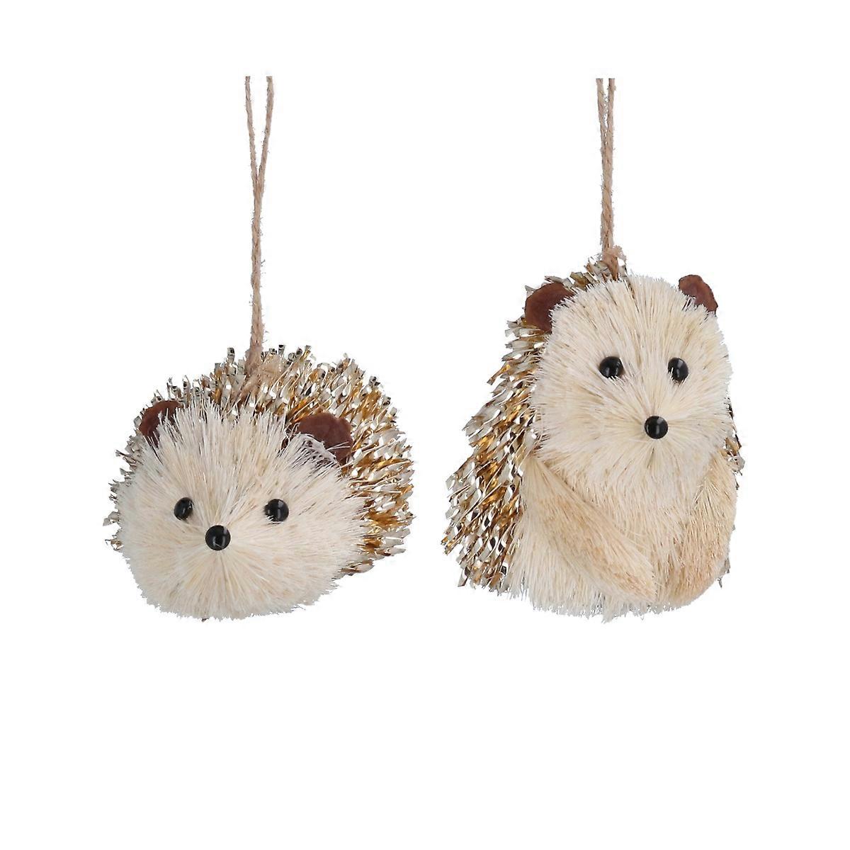 Gisela Graham Set of 2 Gold Bristle Hedgehog Christmas Decorations