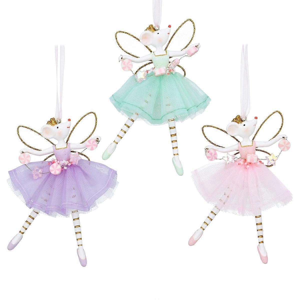 Gisela Graham Set of 3 Candy Fairy Mice Christmas Tree Decorations