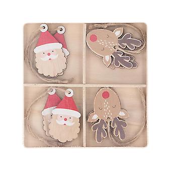 Gisela Graham Santa And Reindeer Wooden Christmas Tree Decorations Gisela Graham Have Brought Out These Wonderfully Made Hanging Decorations, Made From Wood These Ornaments Feature Santa And Reindeer Designs. Each With The Traditional Christmassy Designs Of Bright Red Noses, Festive Santa Hats And Towering Antlers. In This Set You Will Receive 8 Decorations, 4 Of Each Design, Each Finished With Rustic Hanging Twine For A Hassle Free Decorating Experience. Whether You Have A Wooden Christmas Display And Want To Add To The Rustic Feel Of Your Home, Or Maybe You Want Some Novelty Decorations To Feature Within Your Christmas Collection. Either Way, This Set Of 8 Decorations Will Be Sure To Add A Touch Of Texture And Fun To Your Festive Experience. You Have To Include Santa And Reindeer Somewhere In Your Home For Christmas, So Why Not Purchase These Wooden Hanging Decorations From Gisela Graham