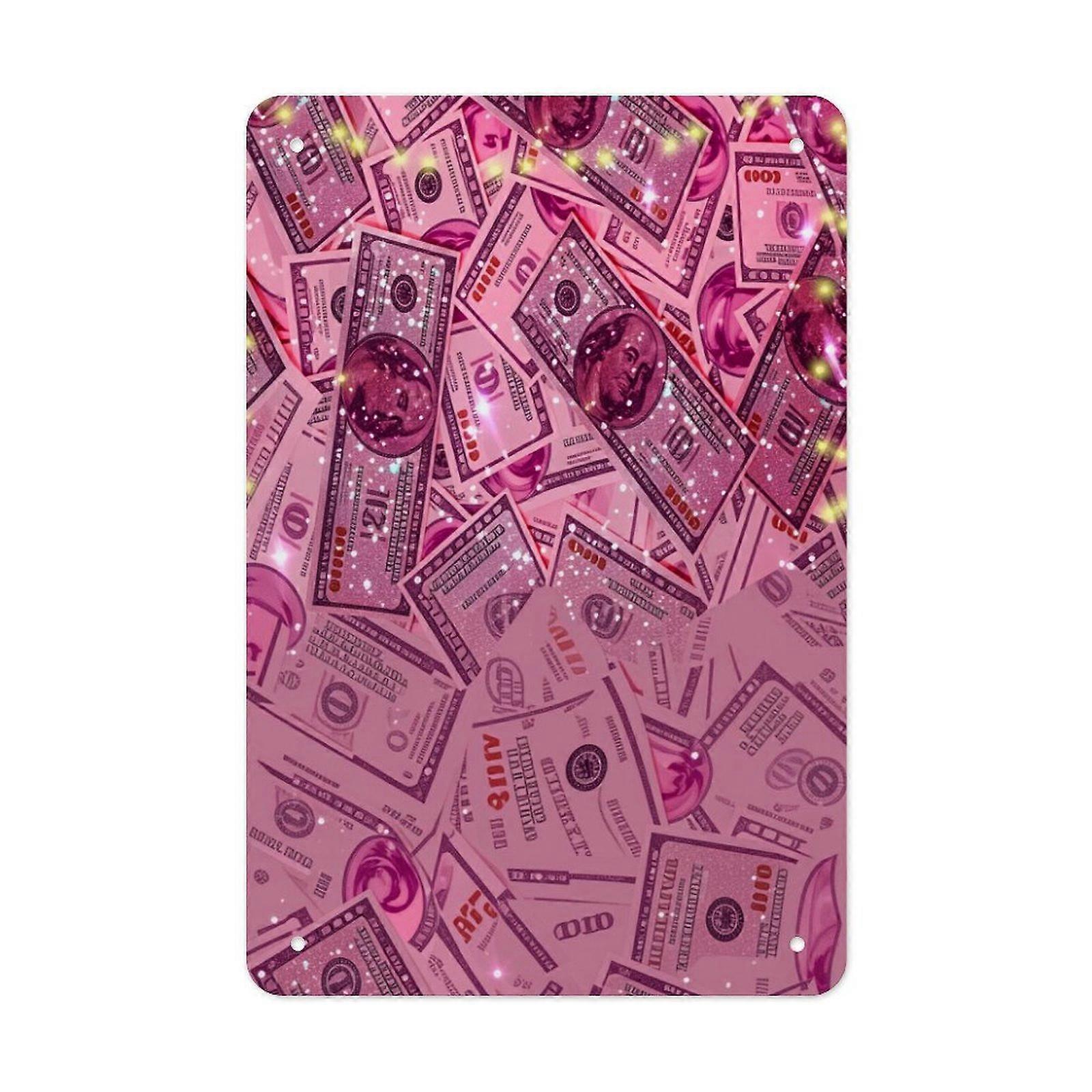 Glam Pink Money Pattern Metal Poster Wall Decoration for Home Living Room Bold Style Tin Sign