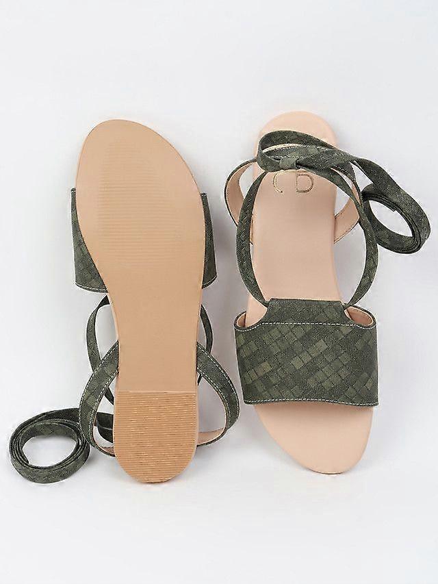 Glam Story Women's GYPSY Self Checks Green Vegan Leather Flats