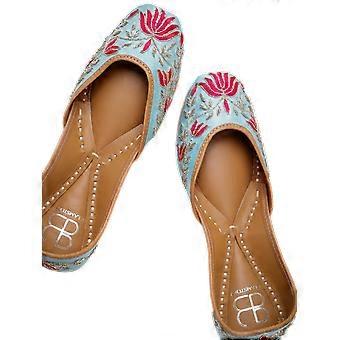 Glam Story Women's Rosalie Blue Embroidered Punjabi Jutti