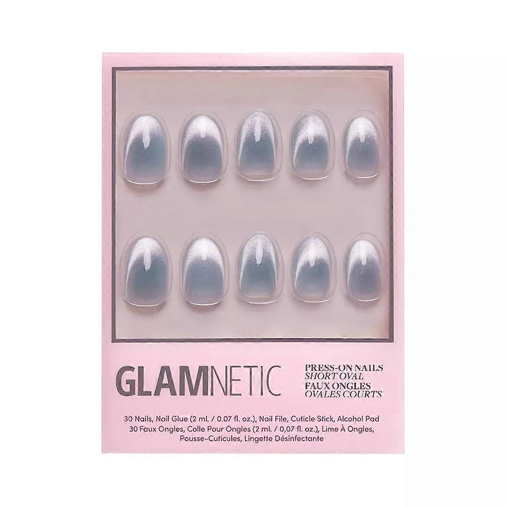 1. Preparation: Gently file the surface of your natural nails. Push back cuticles using the provided wooden stick. Cleanse each nail with the alcohol pad to remove any oils. 2. Glue Application: Apply a thin, even layer of glue to your natural nail. Apply a small amount of glue to the back of the Glamnetic nail. 3. Press & Hold: Align the nail with your cuticle line and apply it at a downward 45-degree angle. Press down firmly and hold for 10 to 20 seconds to ensure a secure bond.
