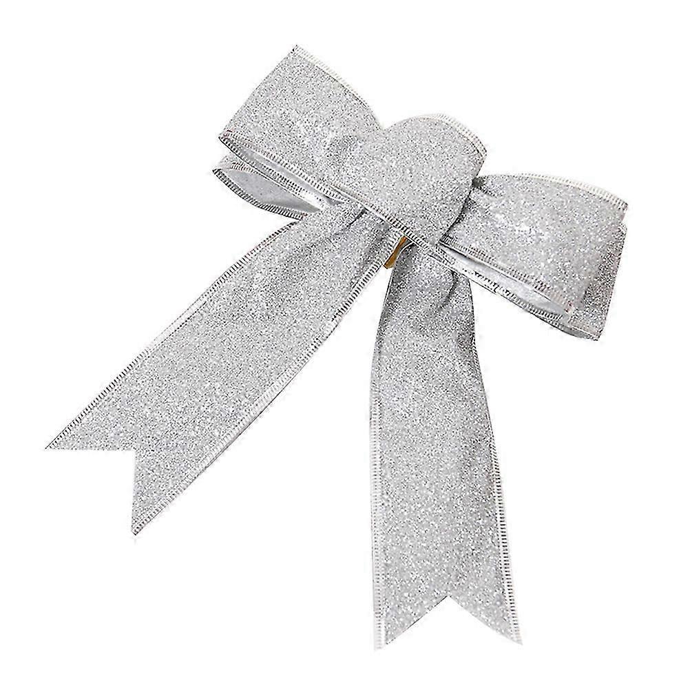 Glitter Dot Bows Ribbons Ornaments Silver Bowknot Ribbon Christmas Ornaments For Chair 4Pcs