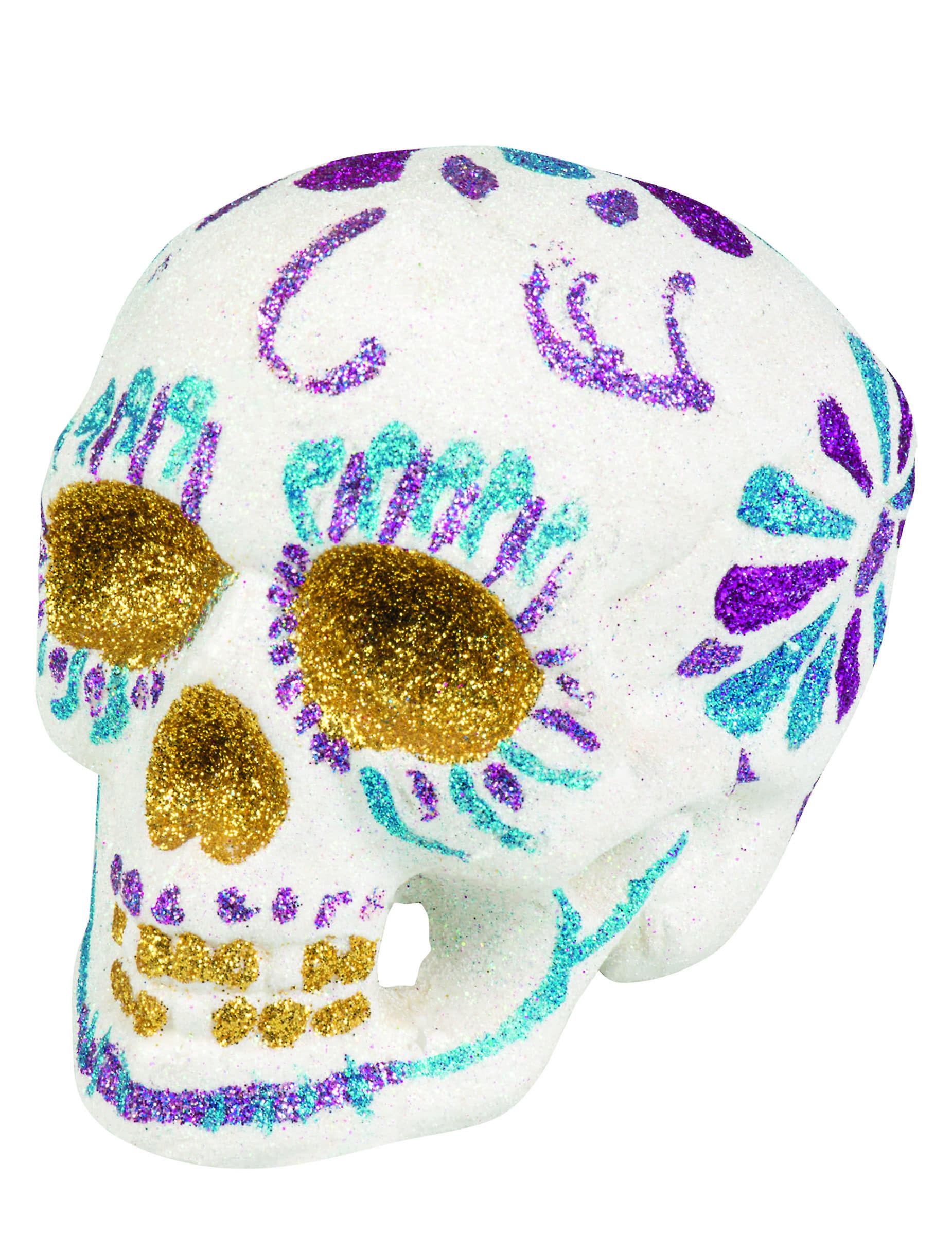 Décoration tête de mort scintillante 16 X 14 cm Dia de los muertos