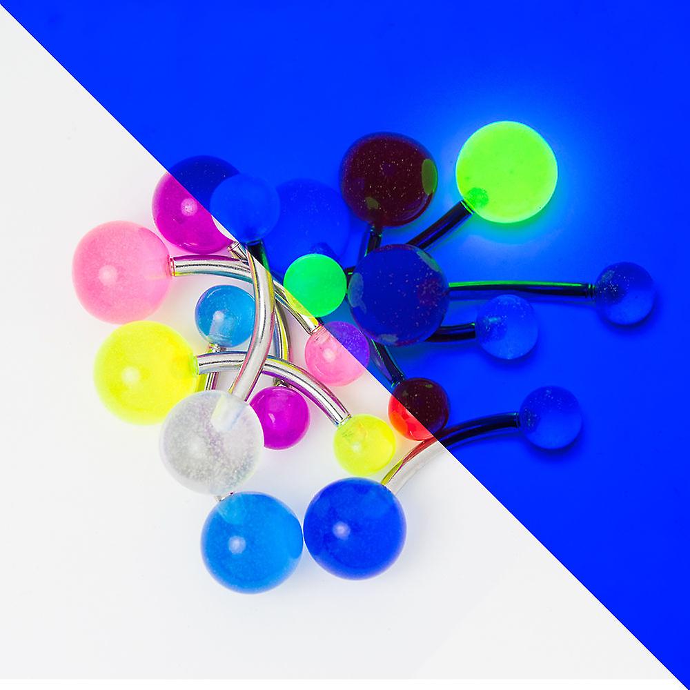 Glow belly button barbell 10 pack - 14ga 316l steel barbell uv glow in the dark
