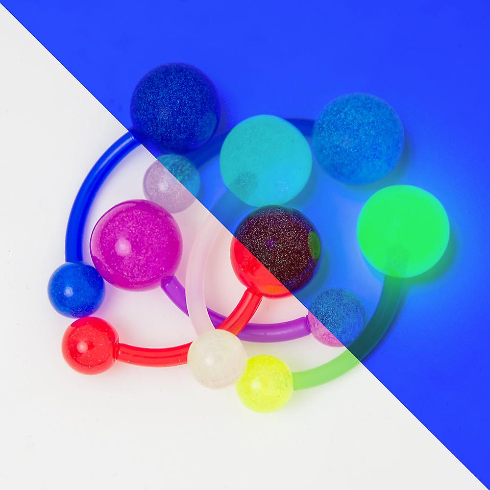 Glow belly button barbell 6 pack - 14ga bio-flex barbell uv glow in the dark